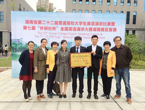 2016年10月22日至23日,“湖南省第二十二届普通高校大学生英语演讲比赛暨第七届‘外研社杯’全国英语演讲大赛湖南赛区复赛”在湖南文理学院成功举办。常德淅淅沥沥的小雨也丝毫未影响参赛选手火一样的澎湃激情。由外国语学院周巧红院长亲自挂帅,朱芙蓉副院长领队,黄敏、蒋成、贺靓三位老师指导,谭英杰、张志伟、黄丹三位同学代表贝博获大赛竞赛一组团体三等奖。其中2014级商学院谭英杰同学获个人一等奖,2014级信息学院张志伟同学获个人三等奖。