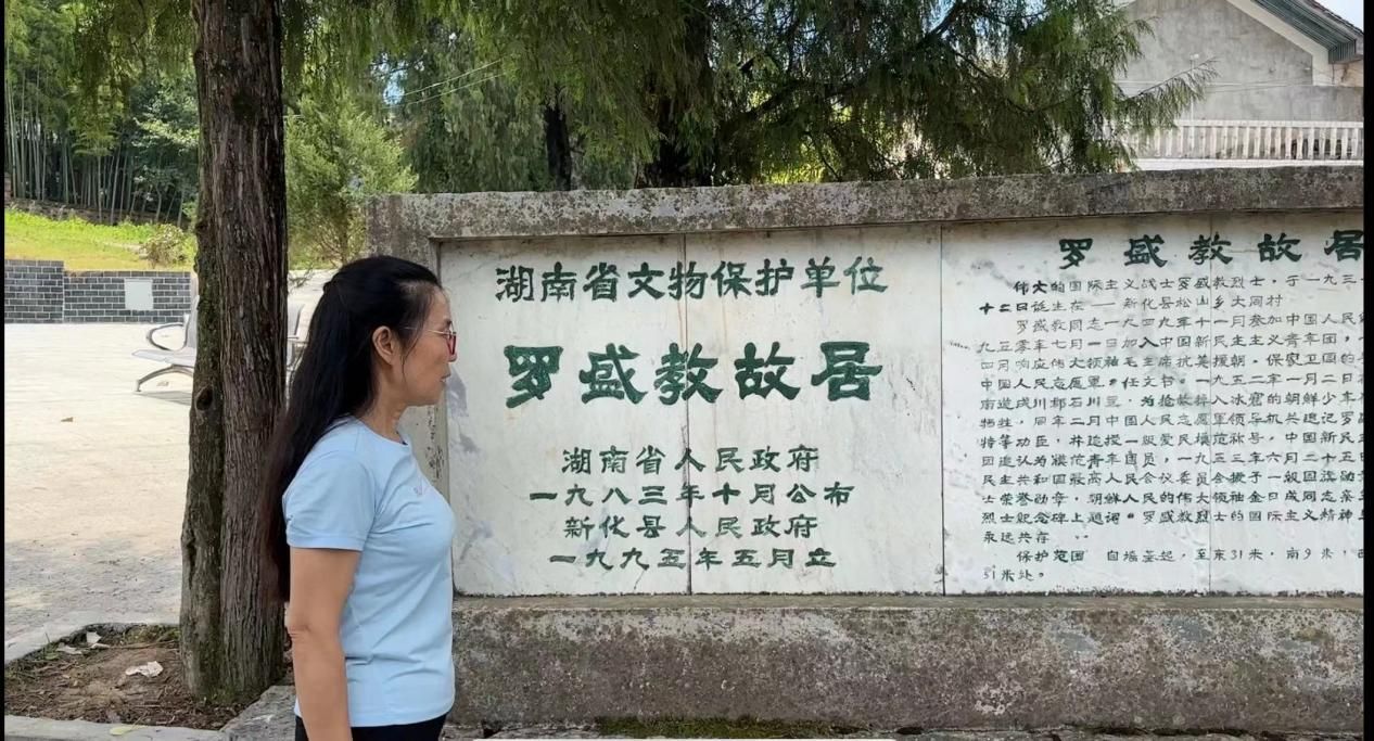 25日,调研团队到达新化县圳上镇罗盛教故居。居室内展览着罗盛教同志的英勇事迹。追寻英雄的成长足迹,团队成员了解到罗盛教由一个普通农家孩子成长为一名伟大的国际主义战士的全过程。罗盛教不顾严寒和个人生命安危,跳入冰窟勇救朝鲜落水少年却不幸牺牲的英雄壮举,深深地感动了大家。此行不仅追忆了革命先烈的光辉历程,也更加坚定了团队成员将红色文化传播出去的决心,希望用英语讲好中国红色故事,能让更多的人了解这段历史,让英雄们的事迹超越语言的界限,激励每一个人。