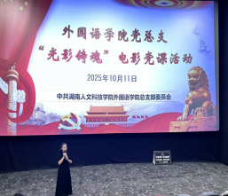 学院党总支书记李霞以微党课的形式总结党建活动。她指出,集中观影是党员教育的新形式,可以让红色历史更加深入人心。她强调,外语人的初心是在讲好中国故事、在翻译中坚守“中国声音不失真”、交流中架起中外桥梁。新时代外语人要从志愿军精神中汲取力量、坚守廉洁底线,落实中央八项规定精神,推进作风建设常态化长效化,以清正师风涵养教风,做育人“大先生”;学生要树立正确价值观,提升专业能力,营造优良学风,做圆梦“奋斗者”。她勉励全体外语人以“外语为武器”,做红色基因传播者、国家战略服务者、中外沟通架起桥梁者和廉洁自律践行者,坚守底线、永葆本色。
