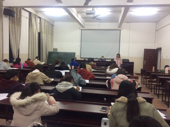 2018年12月12日晚,外国语学院党总支在播馨楼406教室组织开展全体学生党员进行党的基础知识测试。