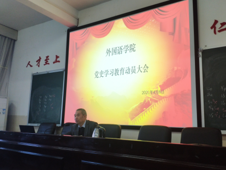 2021年4月6日下午,外国语学院党总支在播馨楼406召开党史学习教育动员大会。全体教职员工参加会议,党总支书记申忠明主持会议。