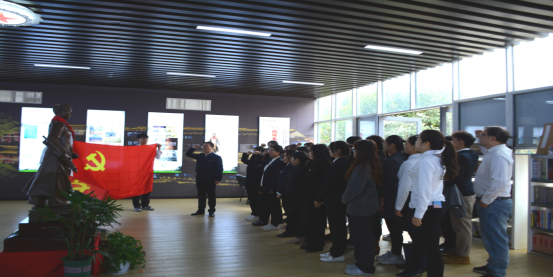 东冲村苍山居作为青年毛泽东游学第一站,留下伟人游学实地调研,向自然、向社会、向劳苦大众求知的事迹,为其日后“实事求是”及“为人民服务”思想奠定基础。我院青年预备党员在院党总支书记阳立新的带领下来到展厅,接受思想洗礼,面对党旗庄严宣誓。开启了一名党员的政治生命,作出了为实现人生最高价值的无悔选择与庄严承诺。随后,阳立新向预备党员们着重说明入党宣誓之于每一党员同志的重要意义,并提出了四点希望:一是要强化政治担当,严守政治规矩;二是要加强理论学习,坚定理想信念;三是要践行党员义务,发挥党员作用;四是增强责任意识,遵守党员纪律。