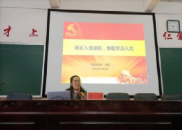 其中,阳立新为学员们解读了党的二十大会议的重要内容与意义,阐述了新时代党领导下我国取得的主要成果和新时代新征程中国共产党人的使命任务。曹瑜虹带领分党校学员们深入浅出地学习了党章有关内容。接着,尹钟宏结合历史和时事具体从多个方面阐述了党的宗旨以及如何履行党的宗旨。罗嗣安为学员们讲解了何为理想信念以及党性的内涵。随后,刘景春围绕党员的义务和党员的权利以及如何辩证统一地认识党员的义务和权利等方面为学员们讲述党课。最后,胡瑾围绕“何为正确的入党动机、为什么要端正入党动机、如何树立正确的入党动机”等方面向学员们讲授党课。本次入党积极分子培训线下授课圆满完成。