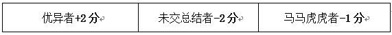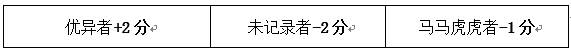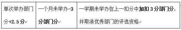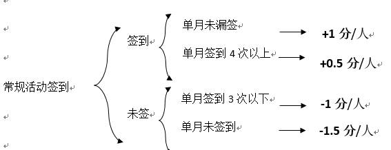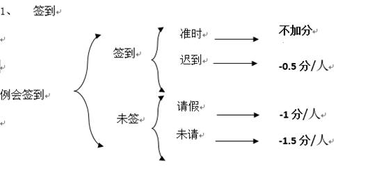 注:每月缺席例会两次或以上者加扣2分/人,单月从未缺席例会者+1分/人,例会迟到15分钟不允许签到。