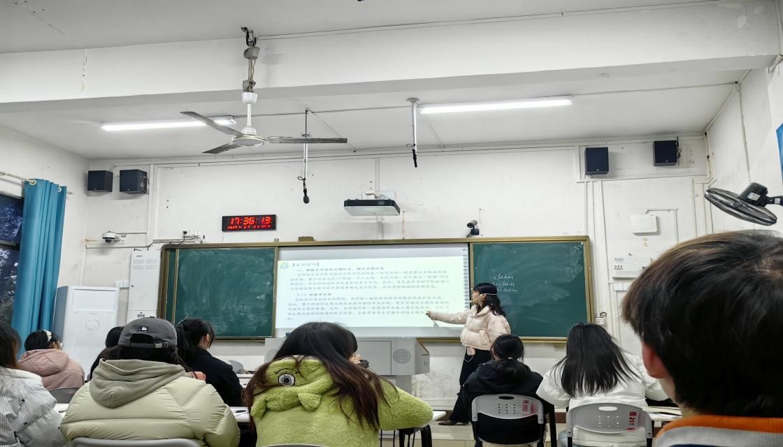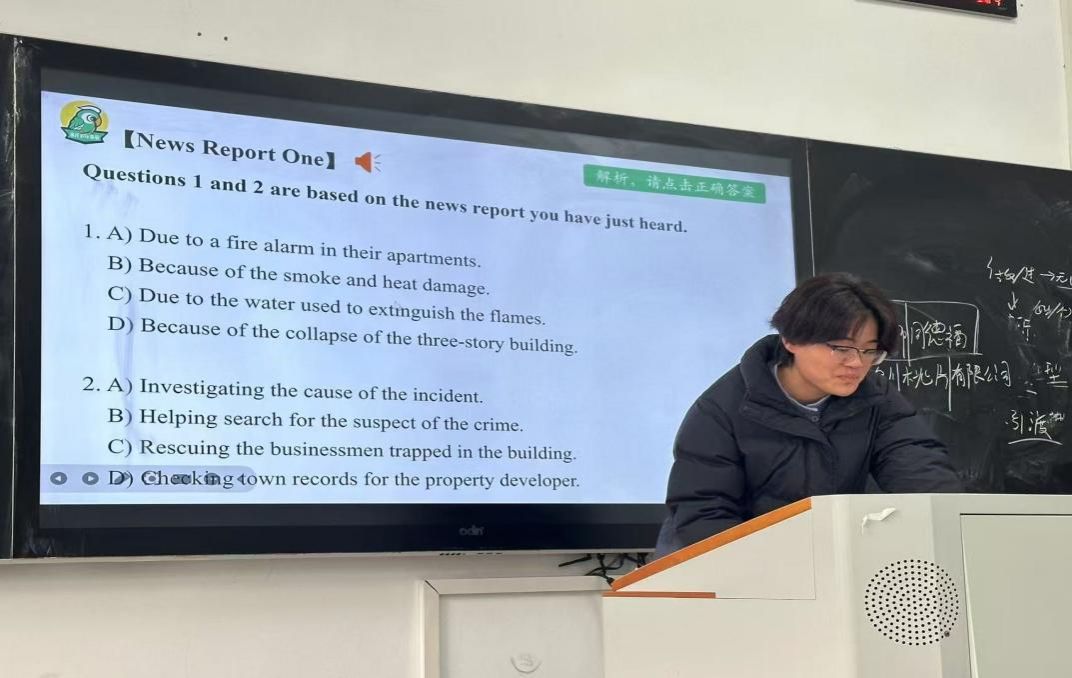 讲解真题时,吴老师妙语连珠。她不时提出问题,如“大家觉得这道题的关键信息在哪里?”“根据刚才听到的内容,我们如何排除错误选项呢?”这些问题像一把把钥匙,引导着学生深入思考,积极探索解题思路。学生纷纷举手发言,各抒己见,课堂气氛十分活跃。