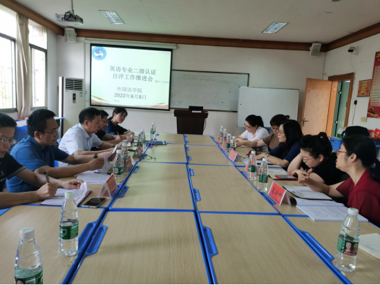 外国语学院院长胡瑾、副院长卿逸豪、副院长张点、副书记罗嗣安、专业负责人禹逸群分别汇报了目前认证工作进展情况以及在工作中遇到的困难和存在的问题。