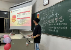 为深入贯彻党中央网络强国战略思想,增强网络安全意识及防范技能,营造健康文明的校园网络环境。2022年9月14日晚外国语学院于播馨楼开展了“编织安全网络,共筑强国梦想”主题团课,2021级、2022级全体学生参加了本次团课。