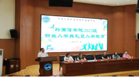 2022年9月17日晚,外国语学院于匠成楼报告厅举办2022级新生开学典礼暨入学教育大会。外国语学院全体院领导、校友办主任刘莉、教研室主任、教务办、辅导员、新生班主任和全体新生参加此次大会。会议由党总支副书记罗嗣安主持。