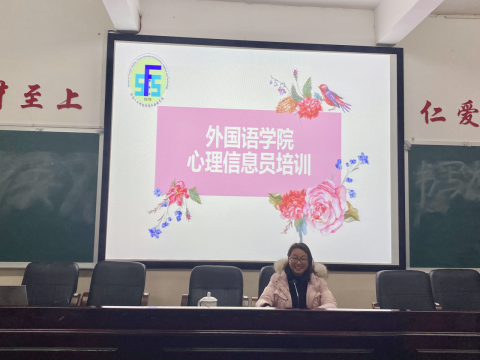 为进一步健全心理信息员制度,完善校园心理危机预警与监控体系,外国语学院在11月24日在播馨楼406开展了心理信息员培训。辅导员龙立平、心理干部、班长、心理信息员参加了此次培训。