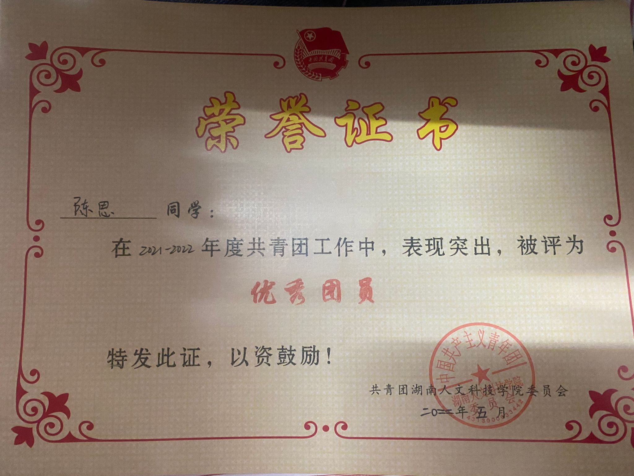 2021-2022年度“优秀团员”