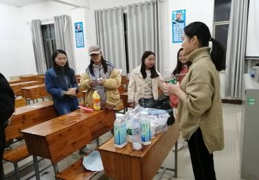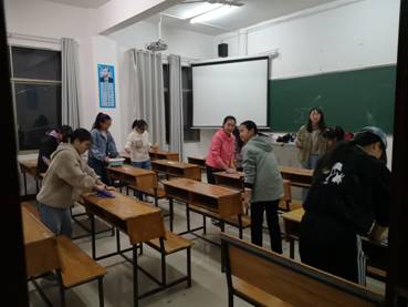 11月25日,外国语学院学工办朱倩老师在组织19级学生会干部开展清理“课桌文化”活动时,发明的课桌清洗液有奇效。