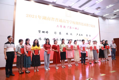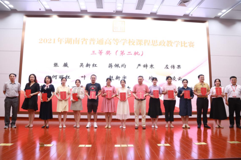 2021年9月27日,湖南省普通高等学校外语课程思政比赛决赛在长沙理工大学隆重举行,ballbet贝博bb艾弗森外国语学院两支教学团队从全省100多个教学团队(个人)中脱颖而出,双双进入决赛,与湖南大学、中南大学等25所省内高校同台竞技。经过激烈角逐,吴新红团队(吴新红、刘欣磊、禹逸群、邓梦林、王菲)荣获英语专业组三等奖,吴岚团队(吴岚、王智芝、周萍、李艳)荣获大学英语组三等奖,ballbet贝博bb艾弗森喜获优秀组织奖。这是对我院课程思政教学成绩的又一次高度肯定,将激励我们继续前行,不断探索,提升外语教学的思想性、人文性、深化教学内涵,实现全程育人、全方位育人的目标。