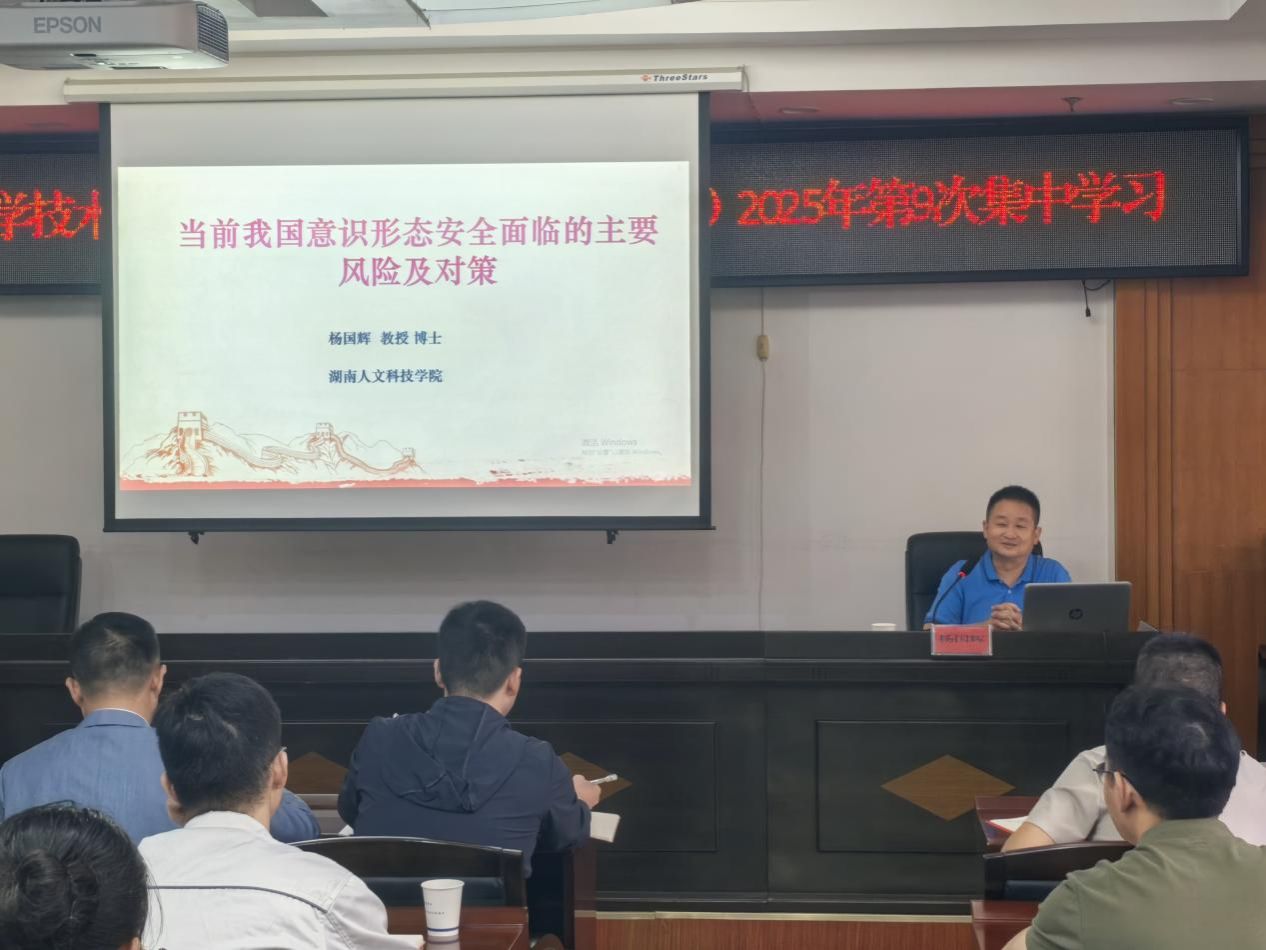 杨国辉系统阐释了意识形态的核心内涵与重要性,并以苏联解体的历史教训为切入点,深入剖析当前我国意识形态安全面临的双重挑战,强调党员干部需切实扛起维护国家安全的责任,为国家稳步发展筑牢思想防线。他表示,推进维护意识形态安全工作应正确处理政治、学术、思想三大问题,着力加强党员干部的底线思维,不断提高其政治站位。随后,与会同志围绕授课内容开展深入研讨。大家一致表示,此次讲座内容务实、针对性强,有效提升了自身政治判断力、政治领悟力、政治执行力,为下一步精准开展意识形态工作提供了明确指引。(供稿人:谢星芝 一审:邓景文 二审:邓莉立 三审:杨国辉)