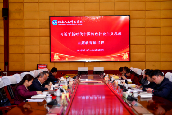 4月26日上午,学校学习贯彻习近平新时代中国特色社会主义思想主题教育读书班在图书馆一会议室开展第三次集中学习。全体校领导及中层正职参加,宣传统战部常务副部长谢柳主持。