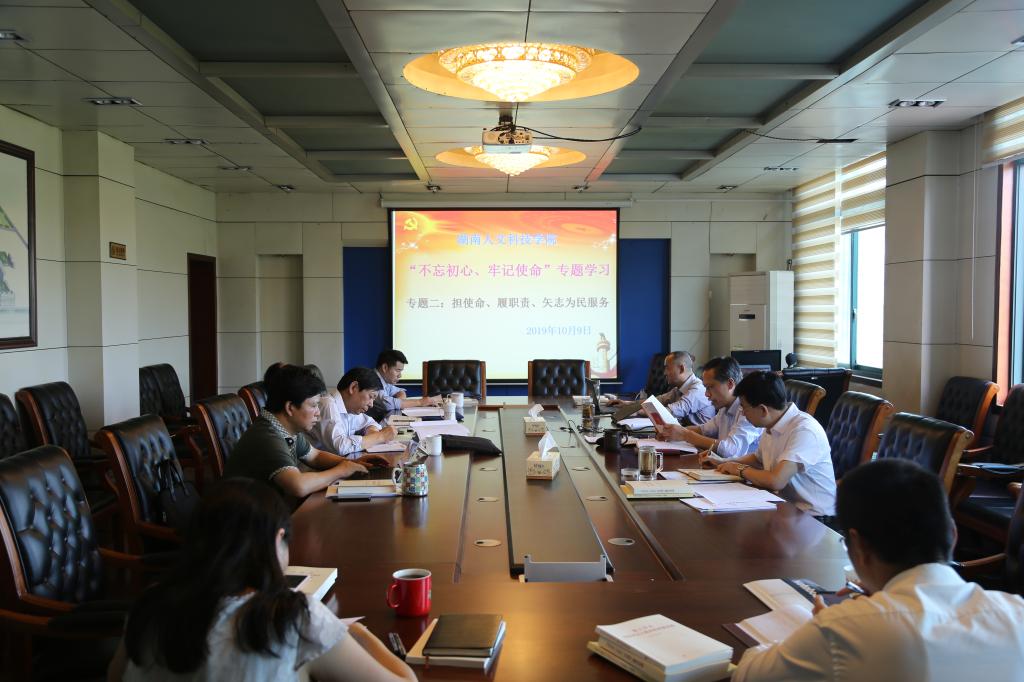 10月9日至10日,校党委班子成员在明德楼二楼和四楼会议室开展了“不忘初心、牢记使命”主题教育第二个专题“担使命、履职责,矢志为民服务”的集中学习。党委书记郭军主持。