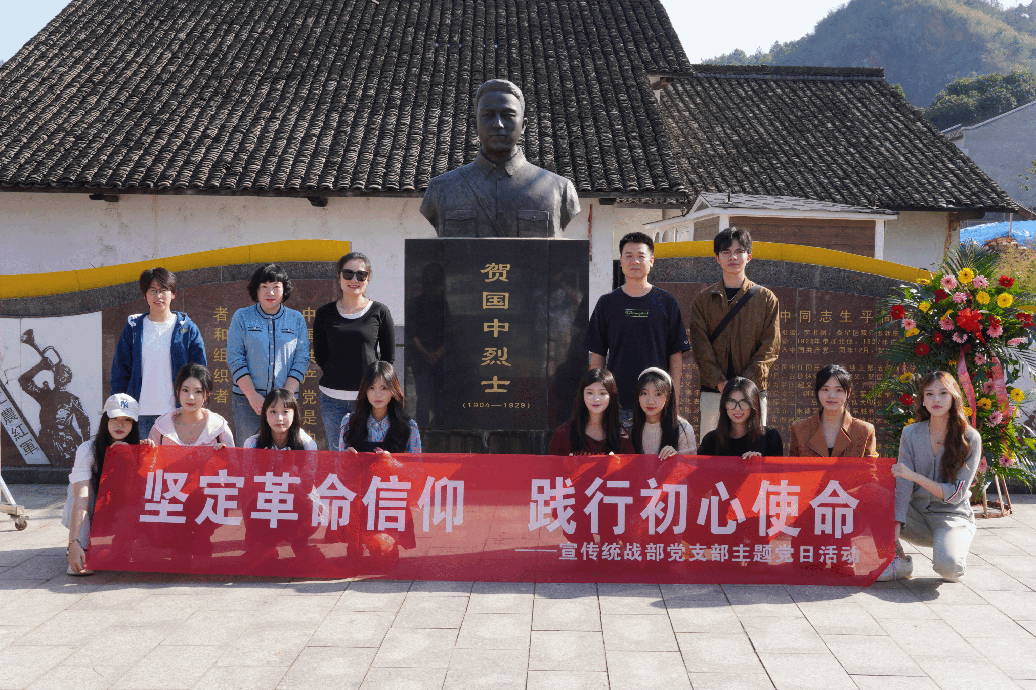 11月1日,宣传统战部全体党员带领校史馆讲解员来到贺国中故居,开展“坚定革命信仰,践行初心使命”主题党日及学习交流活动,聆听红色故事,学习讲解技巧,重温入党誓词,赓续红色血脉,传承革命精神。