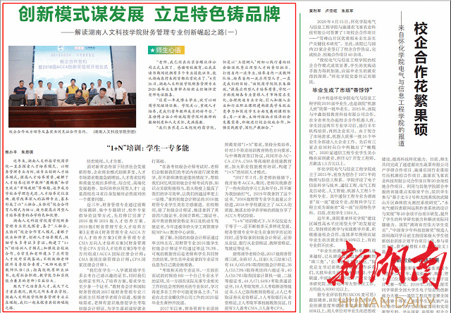 2017年以来,财务管理专业还按照教育部“1+N”要求,坚持分类培养,针对3个职业培训教育特色方向要求,与中博教育签订协议,共同开办ACCA、CPA、CMA等高端职业技能教育班,加大职业技能教育培训,构建了“1+N”的培训人才模式。
