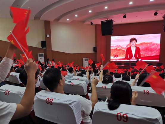 10月1日上午,在中华人民共和国成立70周年的喜庆日子里,校党委委员、副校长刘铁峰,相关职能部门负责人,师生代表在学校匠成楼报告厅集中收看庆祝新中国成立70周年大会、国庆阅兵式和群众游行联欢的直播盛况。