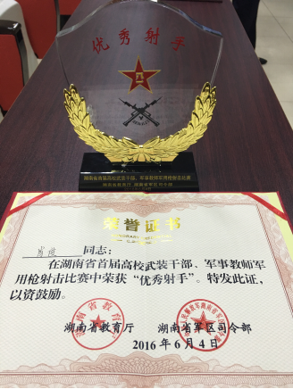 6月4日下午,湖南省首届武装干部、军事教师军用枪射击比赛在湖南警察学院落下帷幕。贝博参赛队员周樑、宁耐桥、肖俊在比赛中奋力拼搏、沉着应战,取得了团体二等奖的好成绩,为学校赢得了荣誉。来自体育学院的兼职军事教师肖俊以92环获得“优秀射手”荣誉称号,并颁发了证书与奖杯。