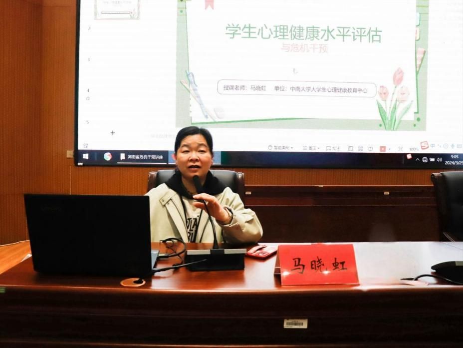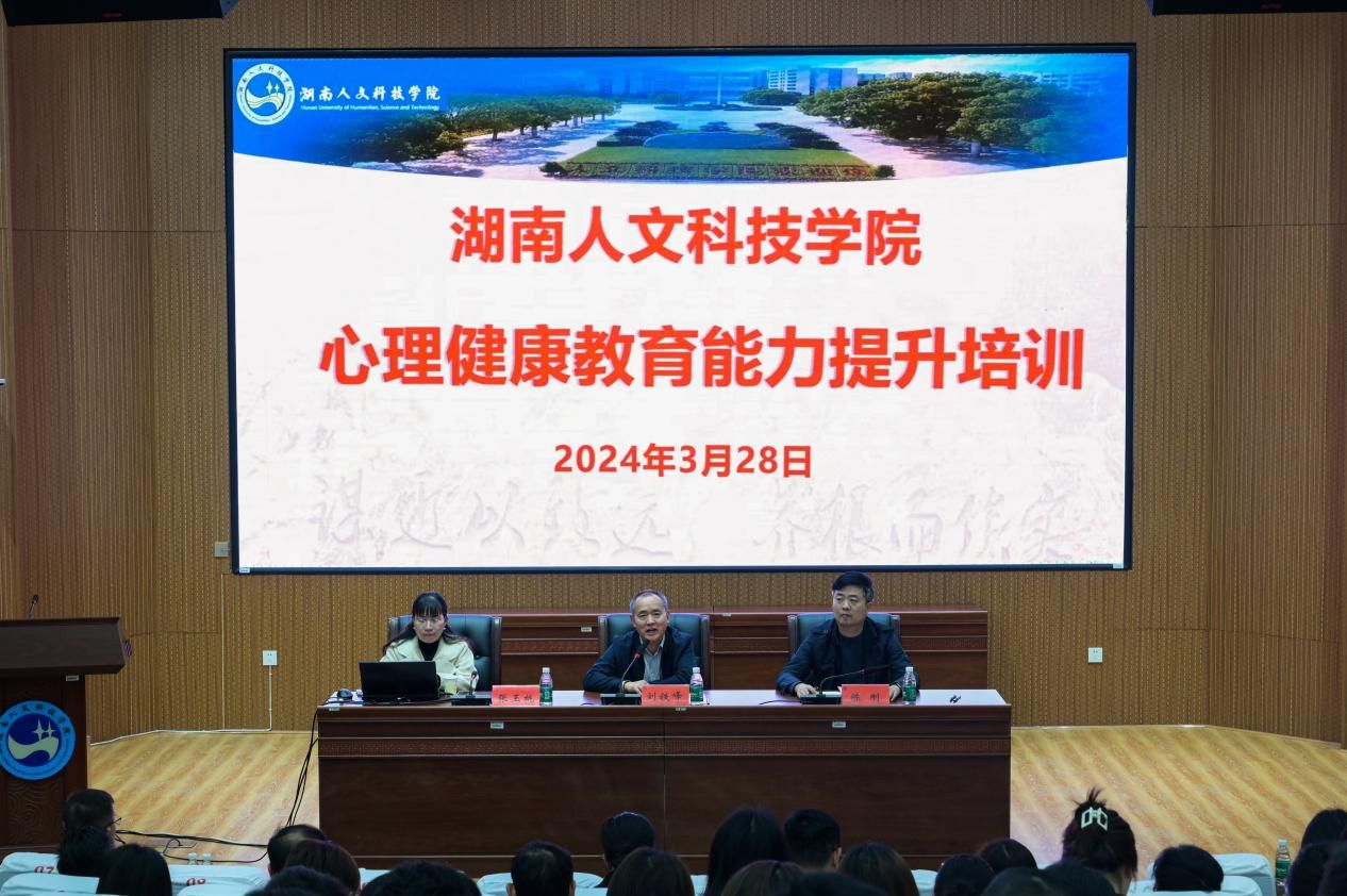 为落实省教育厅心理健康教育工作推进会会议精神,提升贝博学生管理队伍心理健康教育能力与水平,3月28日——29日,贝博2024年心理健康教育能力提升培训在匠成楼报告厅举办。特邀湖南中医药大学心理健康教育中心主任张玉桃和中南大学心理健康教育中心副主任马晓虹授课。党委委员、副校长刘铁峰出席,二级学院党总支副书记、辅导员、班主任及心理中心专职教师参加。