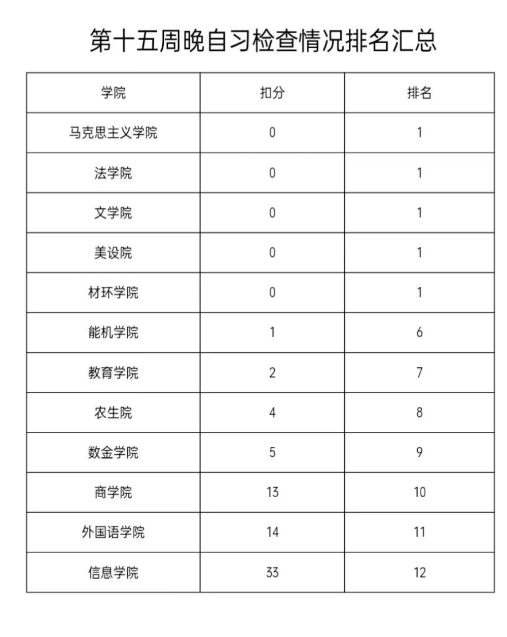 上一条:第二周晚自习、教学楼迟到及教室卫生检查情况 下一条:第十四周晚自习、教学楼迟到、教室卫生及寝室卫生检查情况