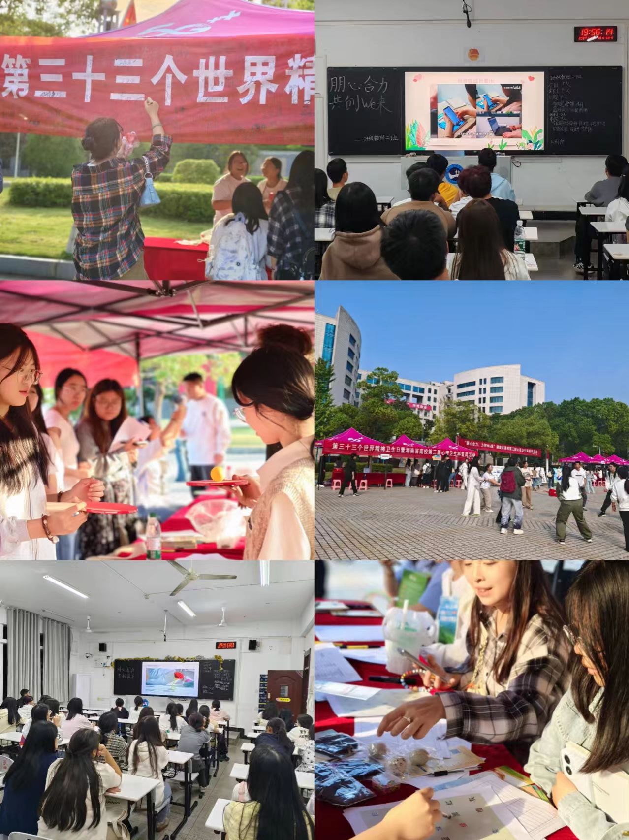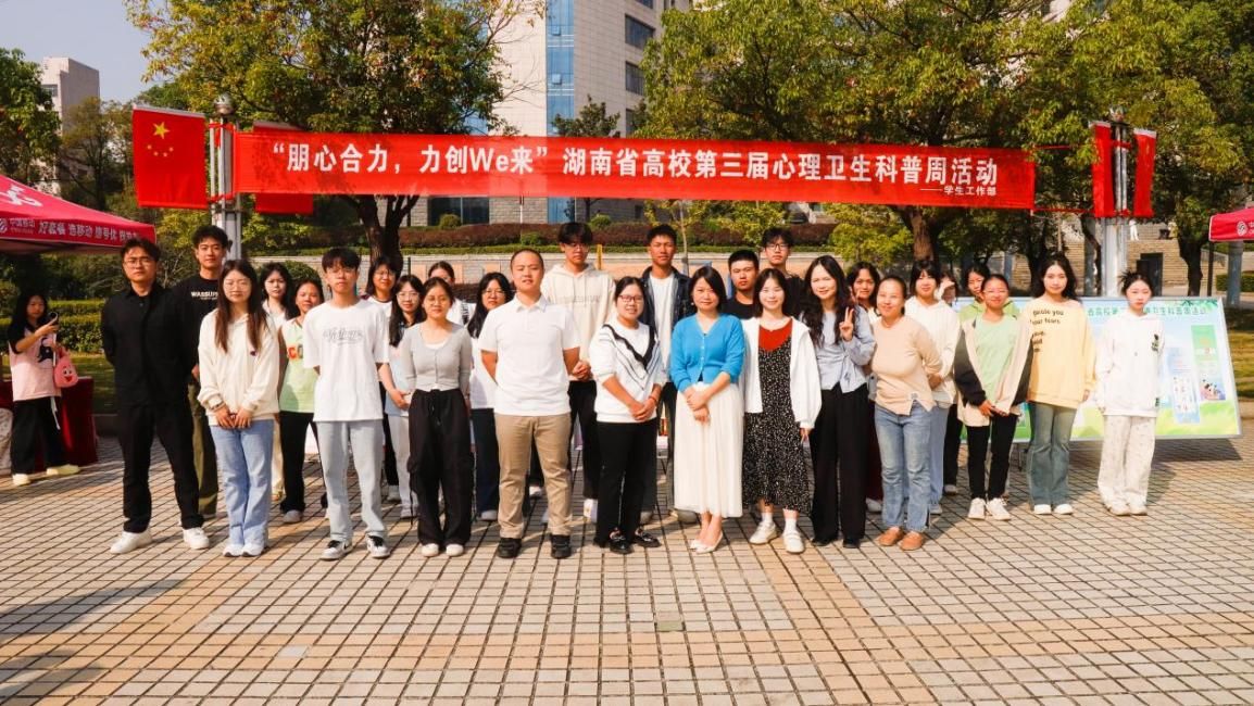10月10日,贝博第三十三个世界精神卫生日暨湖南省高校第三届心理卫生科普周活动在海园广场和新食堂前坪顺利开展。本次活动主题为“朋心合力,共创 We 来”,贝博学工部副部长谢四元、全体心理专职教师、心育专干,近千名学生参与活动。