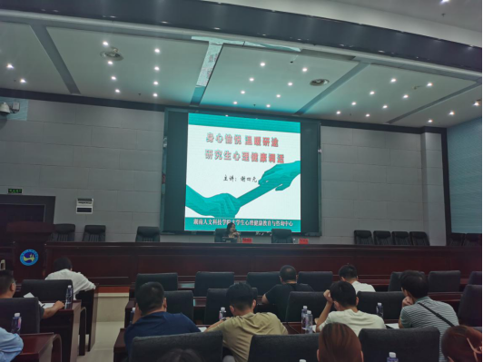 为让2021级研究生尽快适应研究生生活,提升研究生的心理素质,9月14日上午在图书馆二会议室,学校心理健康教育与咨询中心邀请学工处副处长兼资深心理咨询师谢四元老师给新入学的研究生举办了主题为“身心愉悦,温暖研途”的心理健康教育专题讲座。