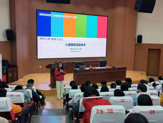 谭嵘以“心理朋辈互助技术”为主题,从互助原则、谈话的基本态度等方面给在场学生做了细致讲解,并指出,心理朋辈互助须掌握心理学相关理论和方法,须始终将保密、遵守设置、量力而行三个关键点放在首位,学生们要不断地自我成长、自我提升。在场的同学们纷纷表示,通过谭老师的讲解,自身对心理朋辈互助体系建设及技术运用有了更深层次的理解。