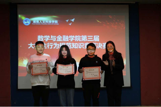 赛后,刘红燃为最后胜出的队伍颁发了证书,对本次抢答赛的举办给予了肯定,并鼓励全体学生树立良好的纪律意识、制度意识,做到自爱、自律,从自身做起,共同建设文明校园、平安校园、和谐校园。