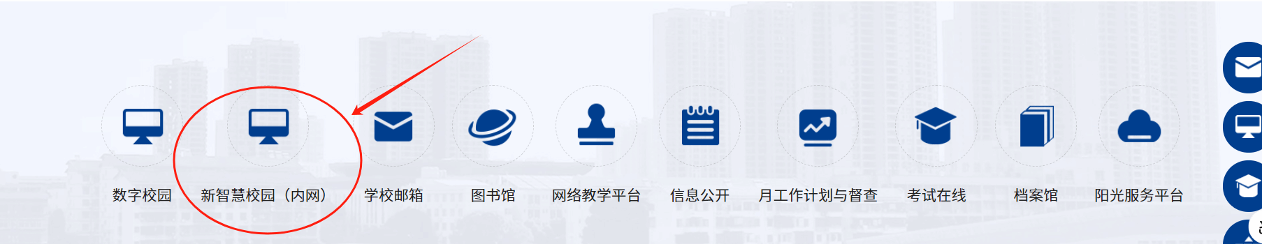 一、打开学校官网,在学校主页下方点击“新智慧校园(内网)”