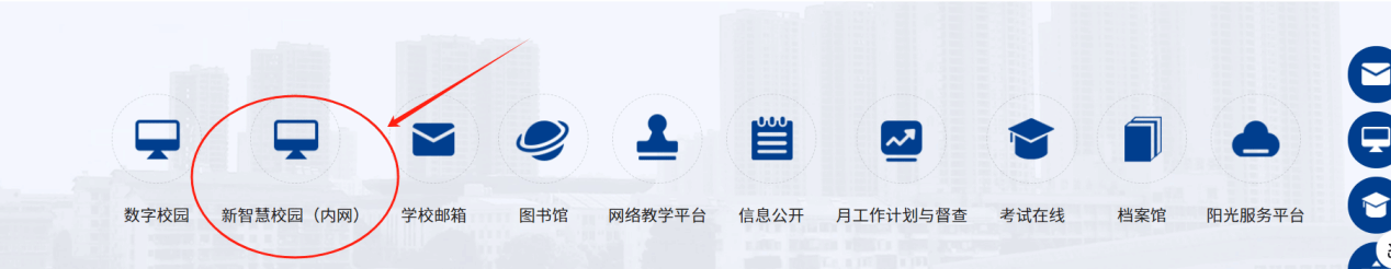 一、打开学校官网,在学校主页下方点击“新智慧校园(内网)”