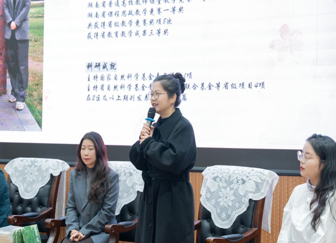 来自农业说生物技术学院的黄敏毅教授以“科研报国、育才成林”为线,讲述科研道路上的酸甜苦辣,以及科研人的浪漫柔情和坚韧执着。来自教务处的白婧副处长双向奔赴,浇灌思政之花,用坚韧自证巾帼可为。回顾求学路时,她坦言曾深陷自我怀疑,但用行动打破“女性不适合科研”的刻板印象。被学生亲切称为“玢姐”的李璐玢老师,以“青春引路,向光而行”为主题,分享在湖南省第十届辅导员素质能力大赛的夺冠经历,讲述“90后”辅导员与“00后”学生共同成长的暖心故事。