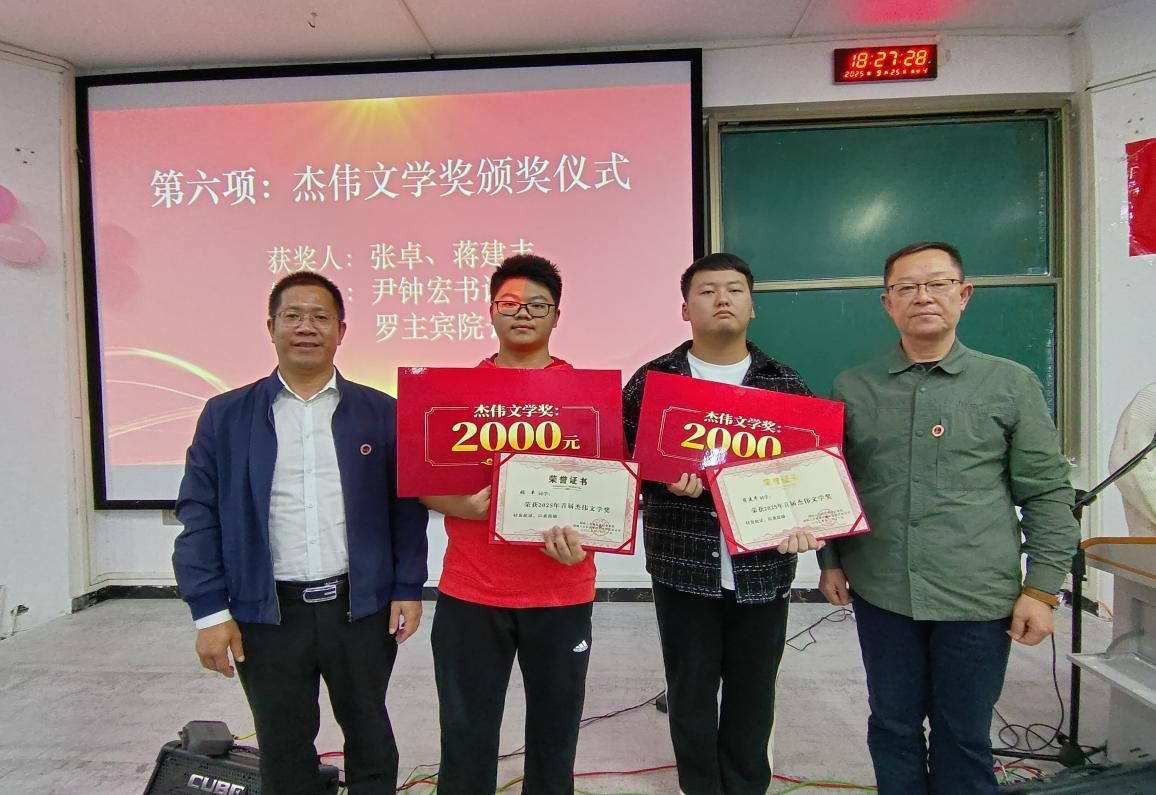 为传承文学薪火、激励青年学子深耕创作,9月25日,贝博文学院举行首届“杰伟文学奖”颁奖仪式。文学院党总支书记尹钟宏、院长罗主宾出席。