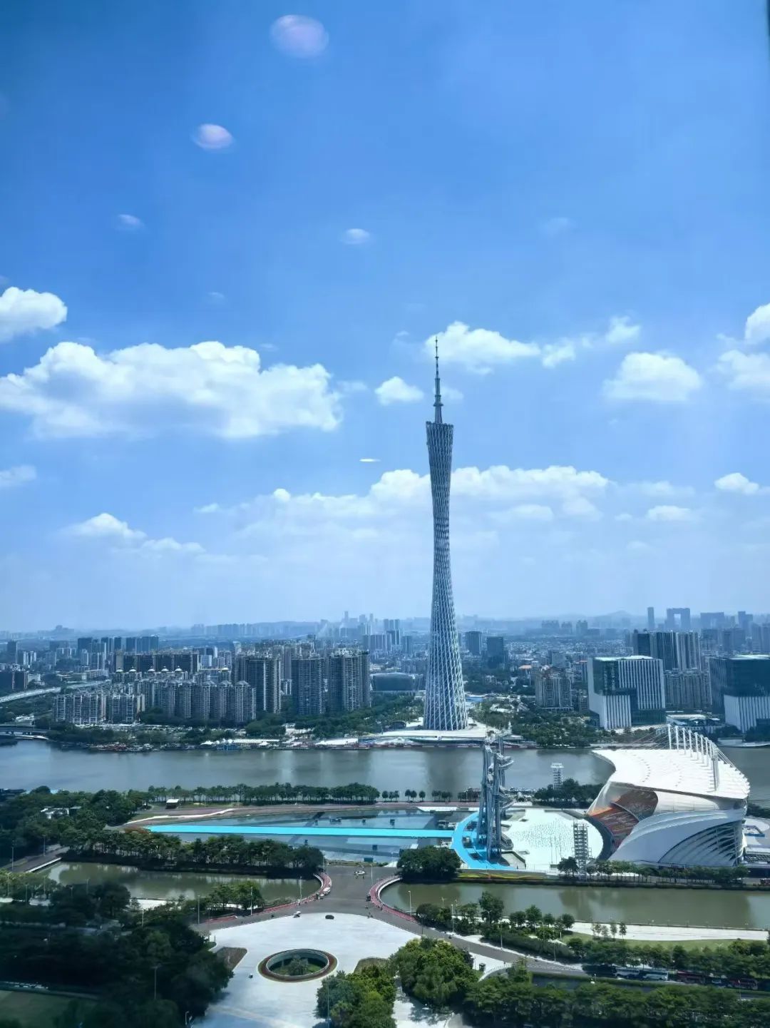 在这陌生的都市,在这广州最高大上的办公楼内,一下子见到了家人。下午茶、水果、沙发,一切陈设整齐。一江之隔,便是广州地标小蛮腰,这是白天观赏小蛮腰的最佳位置,如此的近距离,如此的正面,隔着一江珠水,真是风景这边独好。在这里喝着下午茶,分享着人生经历,聊着母校师友之间的往事,真是人生至美时刻。