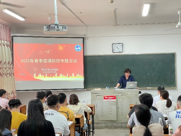 近期我国疫情多地频发,教育系统疫情防控面临复杂严峻形势和挑战,为进一步抓牢研究生疫情防控管理工作,加强研究生的疫情防控思想,研究生教育教育部于3月15日16:30在致远楼411室开展“2022年春节疫情防控专题会议”。研究生教育教学部副书记向瑞桃、班主任曾华、王文琴和李丹及2021级全体研究生参加了此次会议,校外实践的19级、20级研究生通过腾讯会议线上参与,会议由向瑞桃副书记主持。