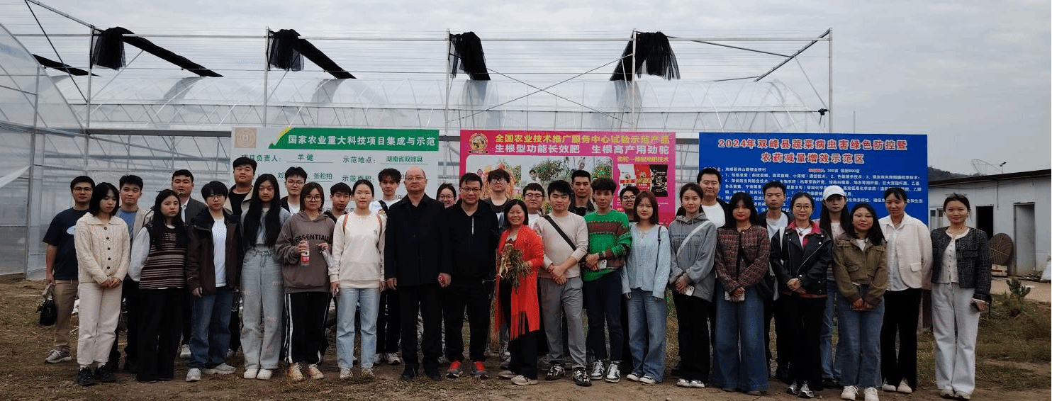 11 月 9 日下午,2024 级资源利用与植物保护及农艺与种业领域的研究生们,在金晨钟、刘秀、胡军和等老师的带领下,前往双峰县洪山殿镇开展《植物有害生物综合防控》课程实践活动,此次活动旨在调查识别田间农作物病虫害发生为害情况,提升学生们将理论知识与实践相结合的能力,同时增强团队协作意识。
