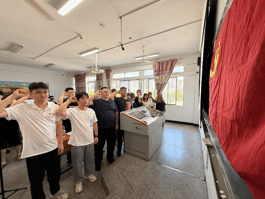 会上,陈敏之等15名入党积极分子依次上台发言,结合自身思想、学习和实践经历,汇报对党的认识、入党动机及成长历程,表达了对加入中国共产党的坚定信念与为人民服务的决心。与会党员认真听取汇报,围绕政治素养、先锋作用等方面展开讨论,并以无记名投票方式全票通过接收决议。随后,在刘康珍书记的带领下,新发展的预备党员共同面对党旗庄严宣誓,铿锵有力的誓词响彻教室。