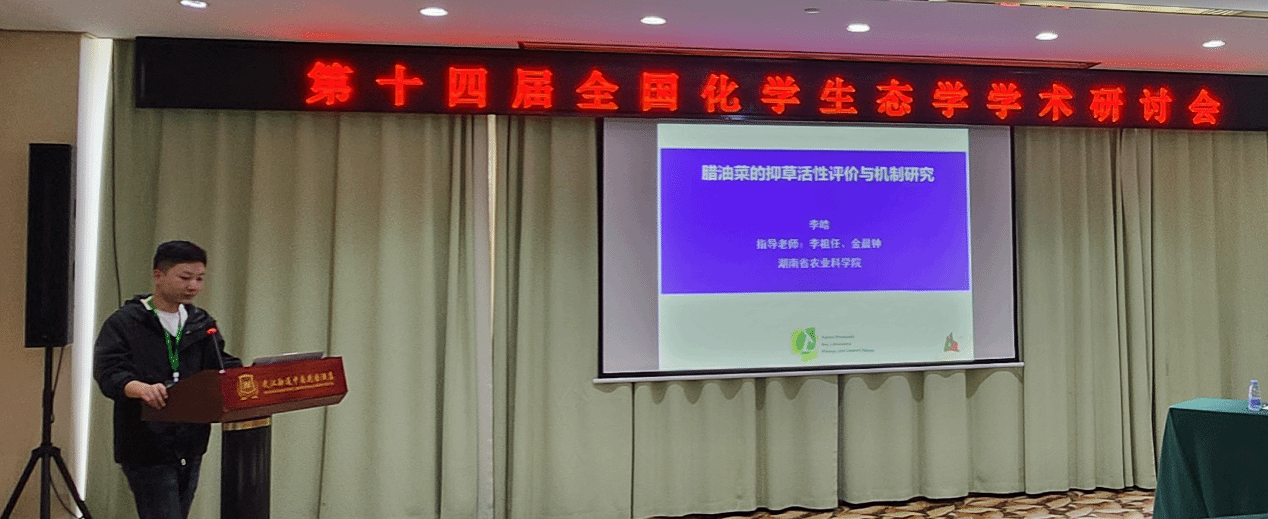 贝博资源利用与植物保护领域研究生李皓在植物化感分会场进行了题为“腊油菜的抑草活性评价与机制研究”的精彩学术汇报。与会师生通过本次交流学习,不仅开拓了学术视野,更为研究生提供了锻炼机会。