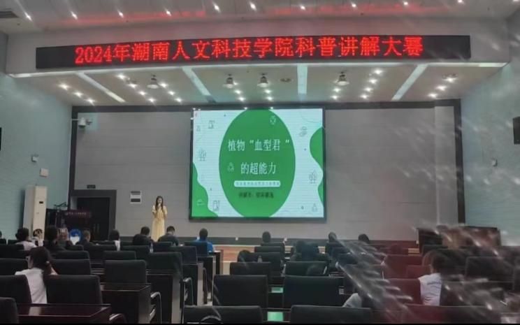 此次比赛面向全校师生,通过层层选拔,共有20名选手进入本次选拔赛。随着植物学研究的不断深入和技术的不断创新,植物学在乡村振兴中的作用尤为突出,因此欧阳馨逸同学以“植物血型君的超能力”为题,生动自然的讲解了植物血型的基本概念,还深入探讨了它们在植物生长、繁殖和抗病过程中的重要作用。讲解既具有科研深度,又贴近实际,让评委和观众们对植物血型有了更加直观和深刻的认识。
