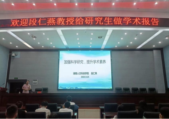 段仁燕教授主要围绕科学研究和学术素养的内涵、我国的科研现状、如何加强科学素养这三个方面的内容展开学术报告,他结合自身的经历鼓励同学们要有不断探索的精神,并要求同学们要明确自己读研的目的。在报告中,段教授反复强调提高自己的研究能力和学术素养是一个长期的过程,需要培养自主学习能力、拓展学术知识、培养批判思维能力、进行科研实践、注重学术道德与规范、加强团队合作能力才能提升自身的研究能力和学术素养。