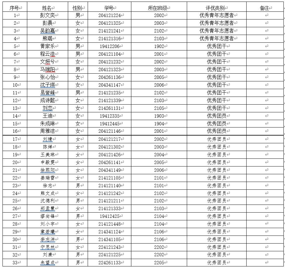 备注:评优类别请按照评优申请类别 (优秀团干、优秀团员、优秀青年志愿者和优秀社团干部) 选择性填写