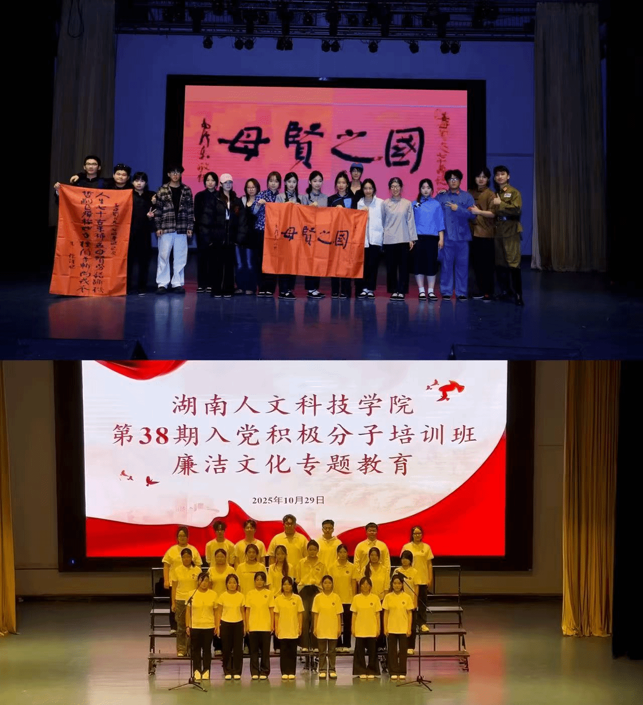 在为期一个月的集中培训中,全体学员通过理论学习和实践锤炼实现了思想境界的全面提升。学员们以沉浸式学习深入领会党的指导思想和基本路线,通过专题研讨和案例教学精准把握党员权利义务的核心要义。同时,本次培训创新性地将廉洁教育与艺术实践有机融合,精心打造了一系列特色活动。革命历史话剧《国之贤母》的精彩呈现,不仅展现了演员们的艺术造诣,更通过鲜活的艺术形象让红色基因深入人心;《廉洁自律之歌》的深情演唱,既表达了学员们对党的赤诚之心,也体现了组织对年轻学子廉洁修身的殷切嘱托;劳动教育的开展,让入党积极分子深刻感受为人民服务的根本宗旨,能更加严格的要求自我。通过系统学习党的光辉历程和优良作风,学员们在思想上受到深刻洗礼,入党动机更加纯粹,理想信念更加坚定,纷纷表示要以更高标准严格要求自己,争取早日成为一名光荣的共产党员。