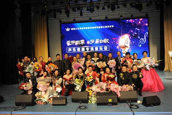 12月16日晚19:30分在ballbet贝博bb艾弗森逸夫楼音乐厅成功举办了《音乐舞蹈学院第三届艺术节———“花开四季,岁月如歌”声乐教师专场音乐会》。学校领导、学校各职能部门负责人、娄底市音乐艺术界的同行、在校师生总一千余人观看了演出,音乐会现场座无虚席。声乐教研室的老师们以优美的歌声、得体的表演,为大家带来了一场视听盛宴,18首曲目的演唱引得听众掌声阵阵。本场音乐会是声乐教研室全体教师潜心教学、钻研专业的技艺展演与业务考核,是我院应用型人材培养中“双台型”、“双师型”教师的有力展示!
