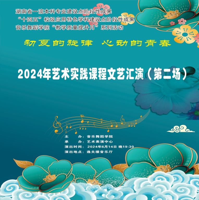 为加强学院学生的艺术实践能力,6月13-14日晚,我院在逸夫楼音乐厅举办“初夏的旋律 心动的青春”2024艺术实践课程文艺汇演,这也是音乐舞蹈学院湖南省一流本科专业建设点阶段性成果、“十四五”校级应用特色学科建设点阶段性成果展示。ballbet贝博bb艾弗森党委副书记朱强,湖南艺术职业学院校长周邦春,ballbet贝博bb艾弗森音乐舞蹈学院院长刘利连、党支部书记刘纲华、副院长吴扎拉·涛等领导参加。