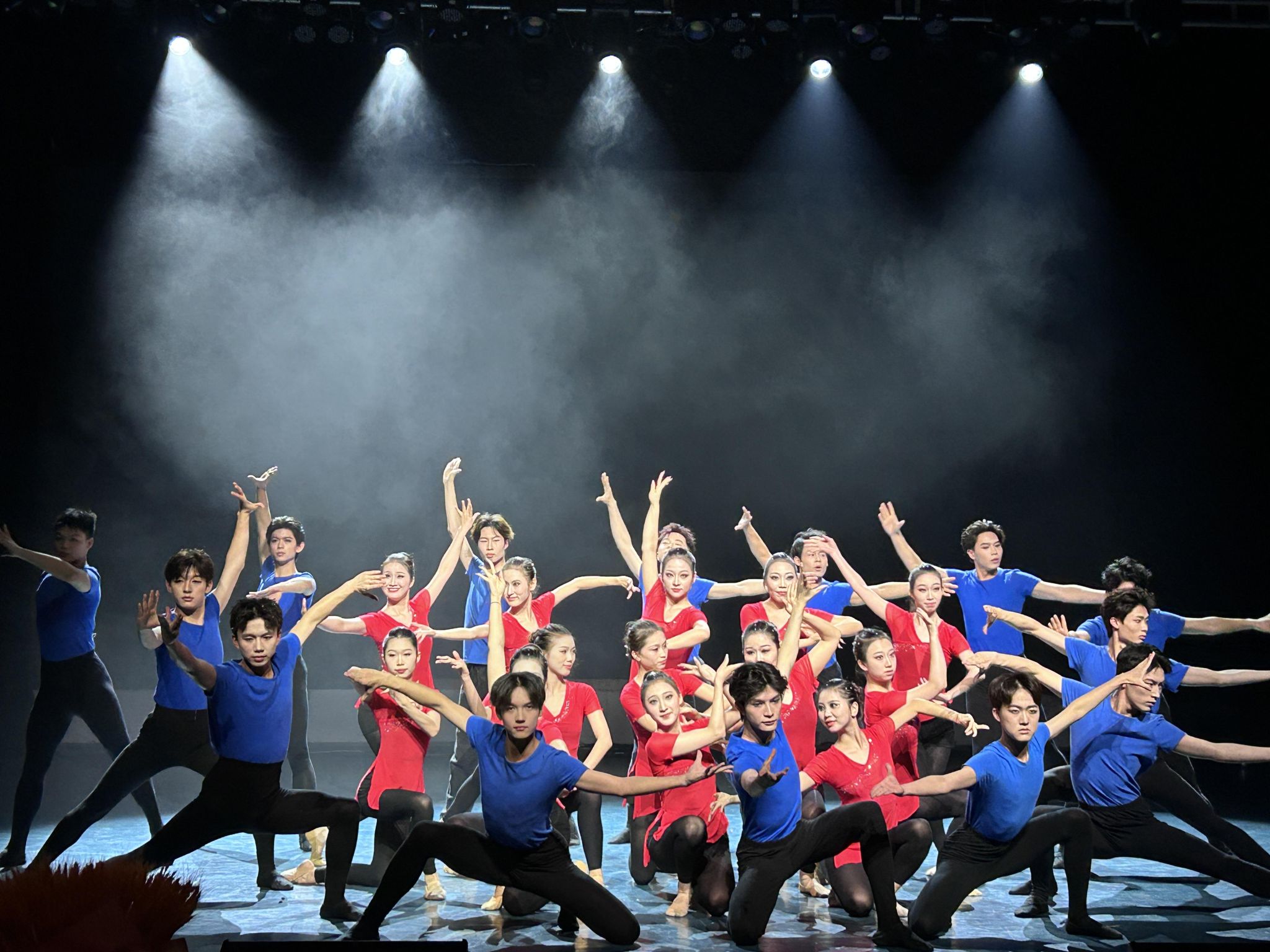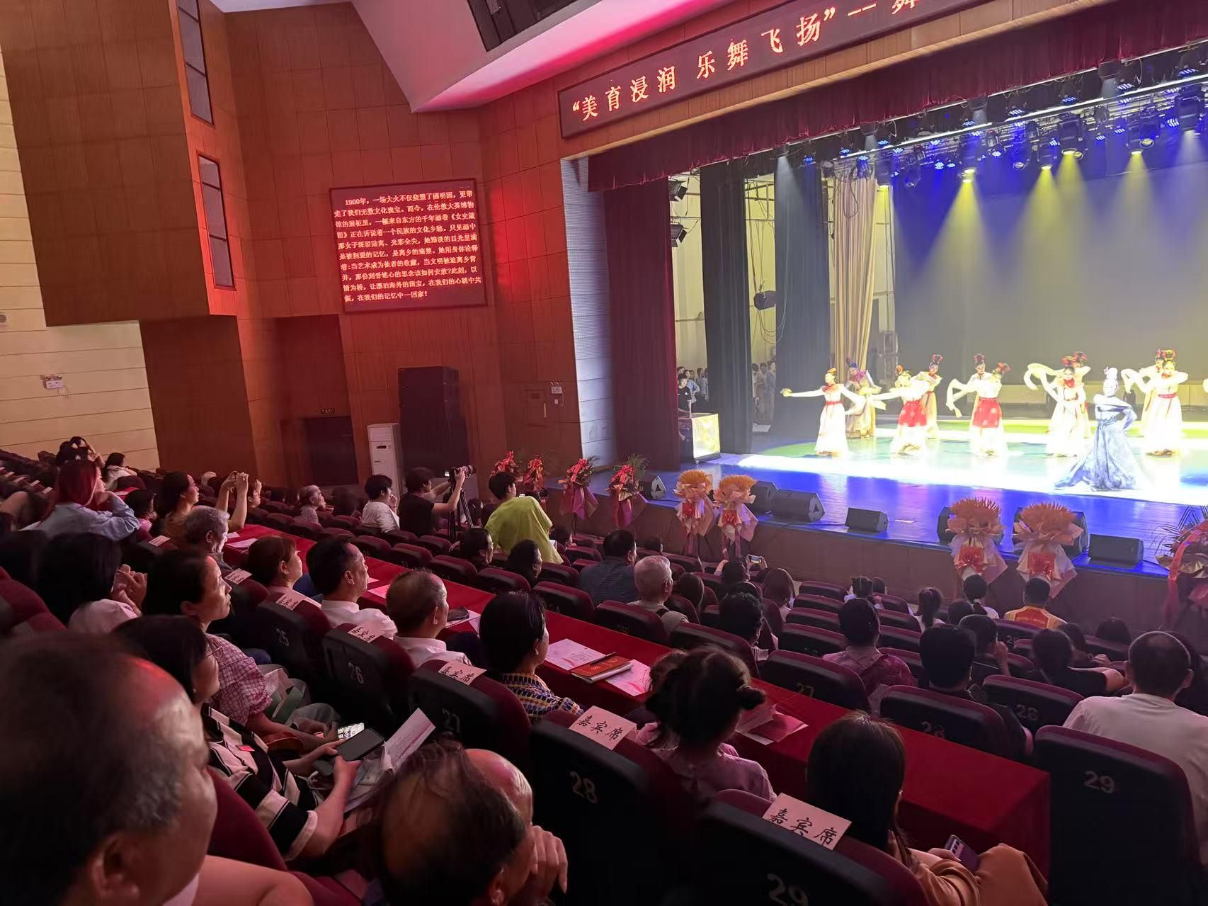 演出结束后,演员与工作人员在舞台合影留念,定格美好瞬间。此次文化艺术节不仅为音乐舞蹈学院的学生提供了展示专业技能的平台,也充分体现了学院在美育教育方面的成果。通过舞蹈艺术浸润心灵,丰富了校园文化生活,促进了艺术文化的传承与创新,获得了现场观众的一致好评。领导嘉宾们的到来,更是对学院艺术教育工作的重视与肯定,激励着学院师生在艺术道路上不断探索前行,为推动校园文化建设和艺术教育事业发展贡献更多力量。