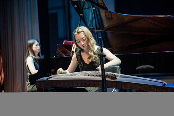 最后出场的是李泽雯同学,首先一首《秦土情》通过古筝与钢琴的融和,以及许多高难度的技巧的展示将曲子中热爱故土之情和思乡之情发挥的淋漓尽致,听了她的演奏仿佛能直接听见作曲者的心声。后一首《大漠行》,演奏出了大漠的广阔,仿佛她置身在大漠之中,感染了在座的每一位观众,乐曲完毕,下面观众响起了热烈的掌声。