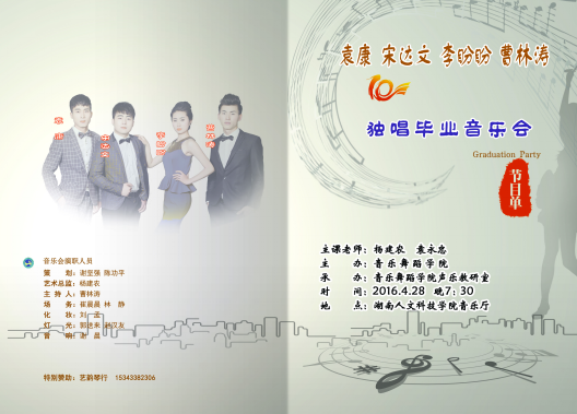 4月28日晚七点半,音乐舞蹈学院在逸夫楼音乐厅举行袁康、宋达文、李盼盼、曹林涛独唱毕业音乐会。杨建农副院长,陈征南教授、袁永忠副教授等领导应邀来到现场与音乐舞蹈学院全体师生共同观看音乐会。