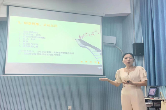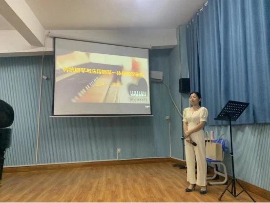 其次,李博士从传统钢琴与应用钢琴一体化教学的意义和教学原则出发,结合教学实践,运用应用钢琴的教学方法和特点,讲授了实际可行的教学方法,更通过课堂教学展示了传统钢琴与应用钢琴一体化教学的成果。教学成果展示形式多样,有钢琴独奏、你弹我唱、自弹自唱,还有钢琴与各种乐器的合奏,教学成果斐然。虽然二者之间音乐风格各不相同,但是传统钢琴与应用型钢琴的一体化应用,才更加符合我国现阶段音乐教育体系。