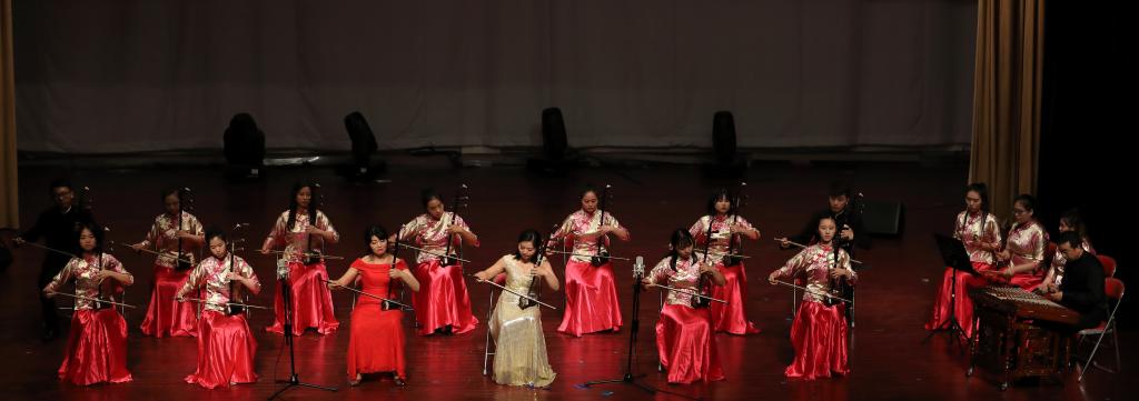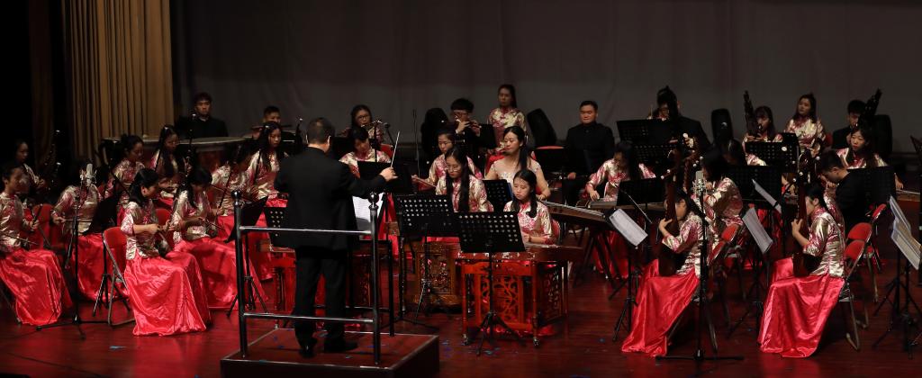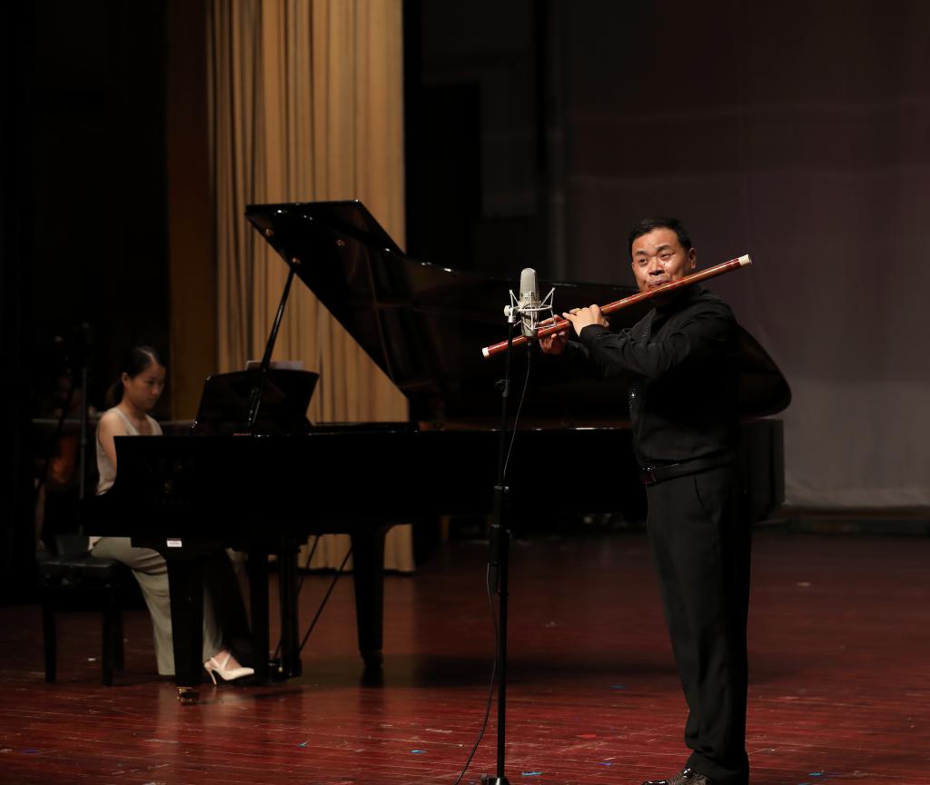 本场音乐会节目丰富多彩,演奏形式多样,有我院院长谢坚强教授作曲的民乐合奏《潇湘乐》、古筝独奏、萨克斯独奏、扬琴独奏、竹笛独奏、板胡独奏、琵琶独奏、二胡独奏、唢呐独奏、二胡齐奏十个节目,音乐会取得了圆满成功。