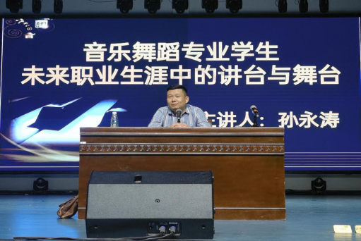 孙校长首先对音乐舞蹈学院的盛情邀请表示了感谢,接着从职业分析入手,一体两翼地阐述了“舞台”和“讲台”的含义,然后从“讲台”一词出发,分析了不同教育对象下教师的角色,以及需要良好的奉献精神、扎实的专业技能,同时也指出:不同的教育对象需要关注不同的教育目的、采取不同的教育方法,分清主次;其次,他再从“舞台”一词出发,阐述了对于选择了舞台的人来说,要求会更高:不仅要求声音形象俱佳,也需要更好的专业水平和综合素养,更是要在激烈的竞争中充分把握“合适的机会”才能绽放光彩!